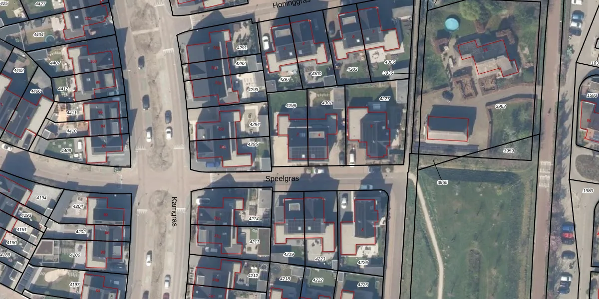 Het perceel waarop Speelgras 2 staat heeft een oppervlakte van 324 m². Dit is een groot perceel. De perceeloppervlakte wordt geregistreerd door het Kadaster. Gedetailleerde informatie over de maten van dit perceel kunt u vinden in het rapport Kadastrale kaart met maatvoering van Speelgras 2.