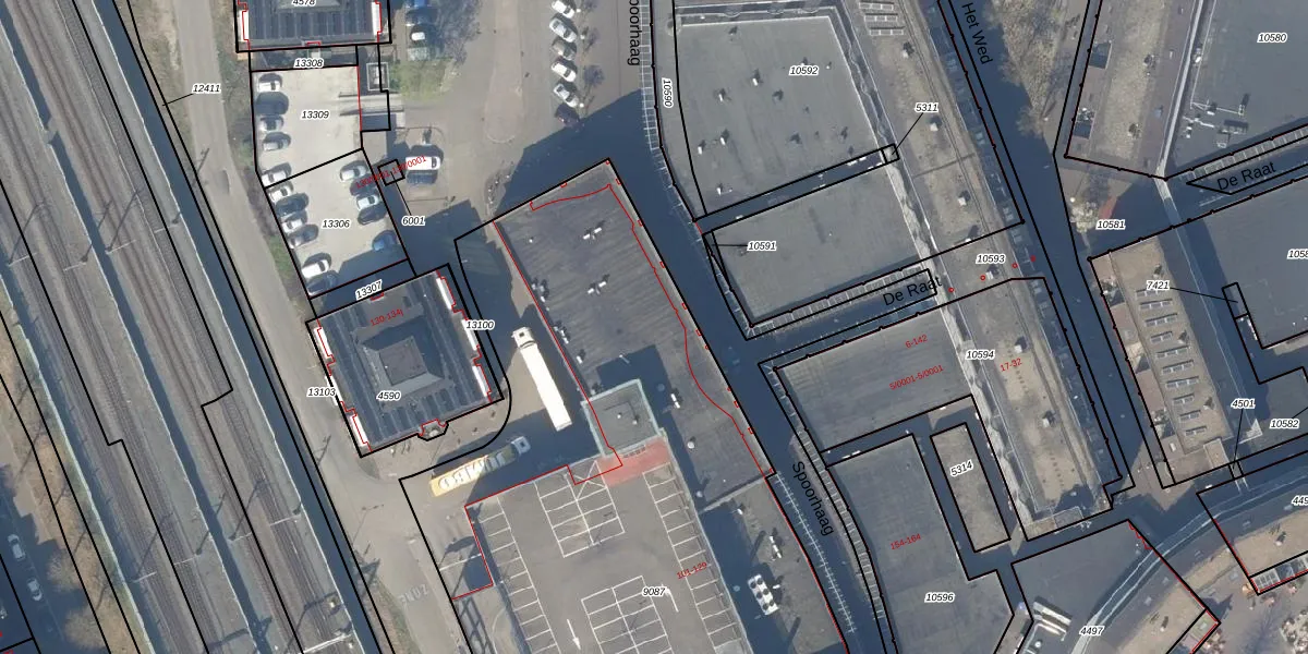 Het perceel waarop Spoorhaag 107 staat heeft een oppervlakte van 4814 m². Dit is een zeer groot perceel. De perceeloppervlakte wordt geregistreerd door het Kadaster. Gedetailleerde informatie over de maten van dit perceel kunt u vinden in het rapport Kadastrale kaart met maatvoering van Spoorhaag 107.