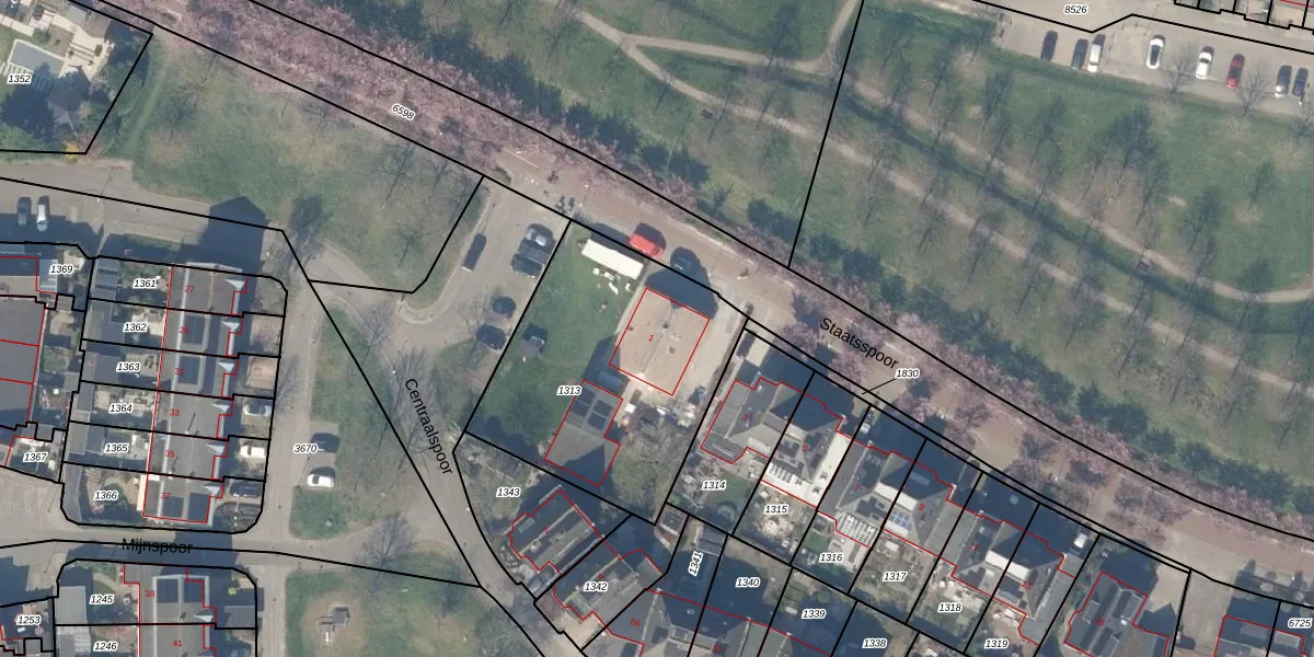 Staatsspoor 1 is gelegen op kadastraal perceel HTN04B1313. Deze kadastrale aanduiding is uniek en wordt gebruikt door het Kadaster om eigendomsrechten en andere zakelijke rechten vast te leggen. Het perceel maakt onderdeel uit van de kadastrale gemeente Houten.