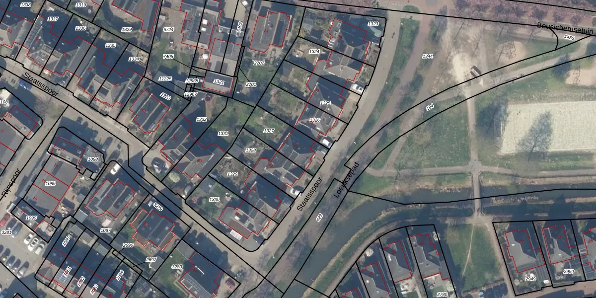 Staatsspoor 31 is gelegen op kadastraal perceel HTN04B1327. Deze kadastrale aanduiding is uniek en wordt gebruikt door het Kadaster om eigendomsrechten en andere zakelijke rechten vast te leggen. Het perceel maakt onderdeel uit van de kadastrale gemeente Houten.
