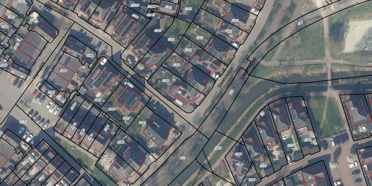 Het perceel waarop Staatsspoor 37 staat heeft een oppervlakte van 378 m². Dit is een groot perceel. De perceeloppervlakte wordt geregistreerd door het Kadaster. Gedetailleerde informatie over de maten van dit perceel kunt u vinden in het rapport Kadastrale kaart met maatvoering van Staatsspoor 37.