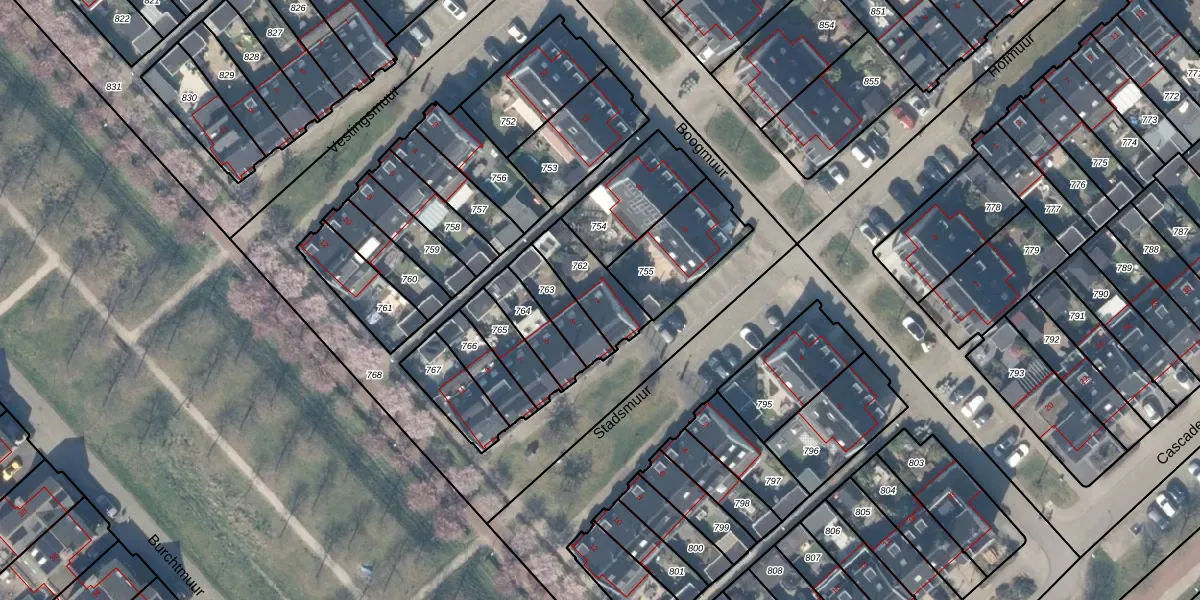 Het perceel waarop Stadsmuur 1 staat heeft een oppervlakte van 163 m². Dit is een middelgroot perceel. De perceeloppervlakte wordt geregistreerd door het Kadaster. Gedetailleerde informatie over de maten van dit perceel kunt u vinden in het rapport Kadastrale kaart met maatvoering van Stadsmuur 1.