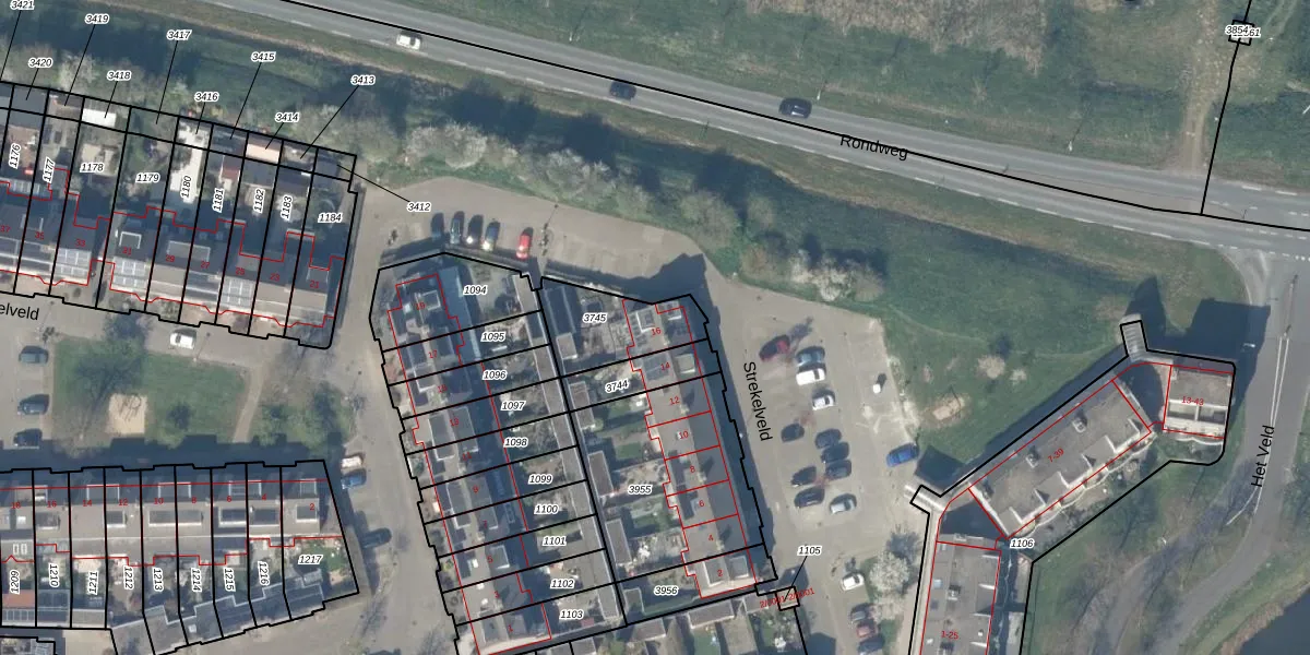 Strekelveld 16 is gelegen op kadastraal perceel HTN04E3745. Deze kadastrale aanduiding is uniek en wordt gebruikt door het Kadaster om eigendomsrechten en andere zakelijke rechten vast te leggen. Het perceel maakt onderdeel uit van de kadastrale gemeente Houten.