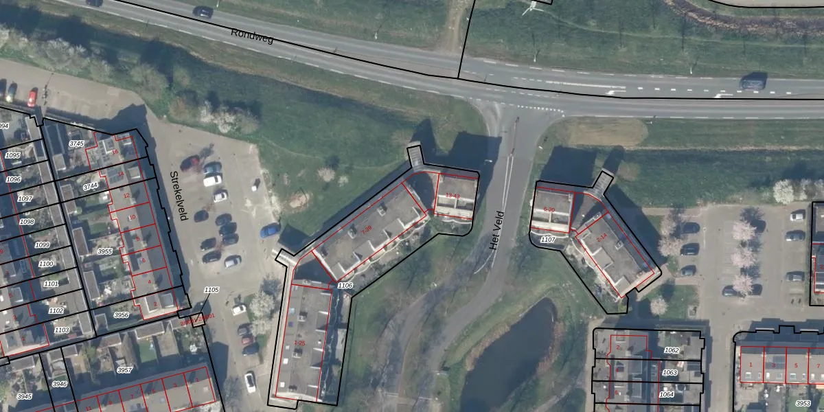 Strekelveld 39 is gelegen op kadastraal perceel HTN04E1106. Deze kadastrale aanduiding is uniek en wordt gebruikt door het Kadaster om eigendomsrechten en andere zakelijke rechten vast te leggen. Het perceel maakt onderdeel uit van de kadastrale gemeente Houten.