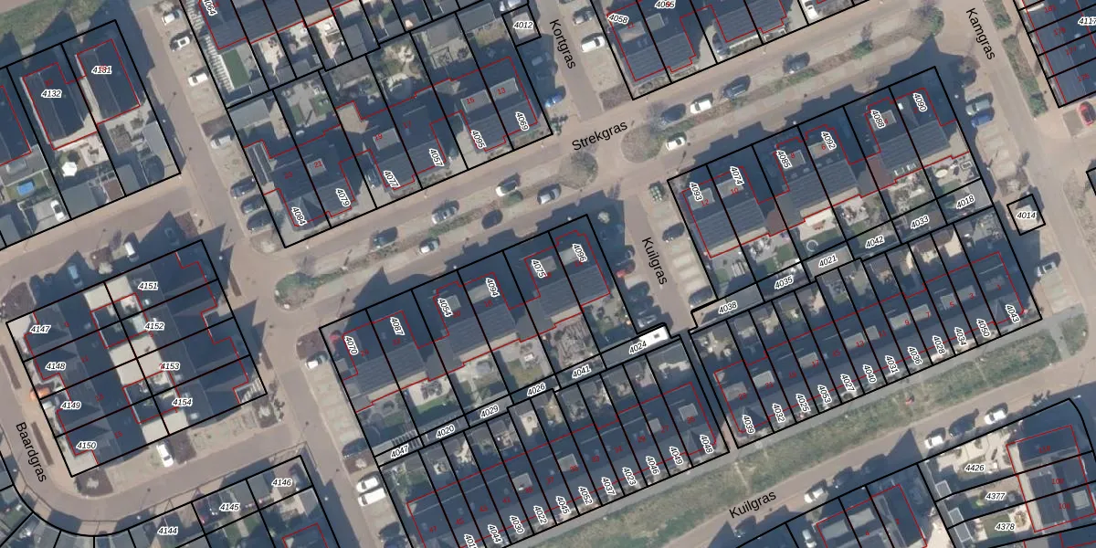 Strekgras 16 is gelegen op kadastraal perceel HTN04B4075. Deze kadastrale aanduiding is uniek en wordt gebruikt door het Kadaster om eigendomsrechten en andere zakelijke rechten vast te leggen. Het perceel maakt onderdeel uit van de kadastrale gemeente Houten.