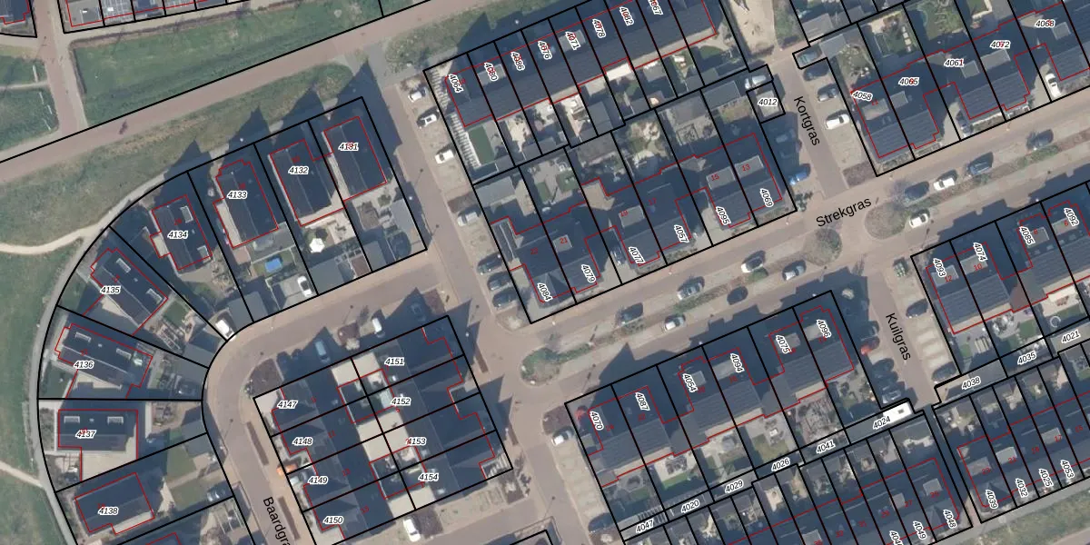 Strekgras 23 is gelegen op kadastraal perceel HTN04B4084. Deze kadastrale aanduiding is uniek en wordt gebruikt door het Kadaster om eigendomsrechten en andere zakelijke rechten vast te leggen. Het perceel maakt onderdeel uit van de kadastrale gemeente Houten.