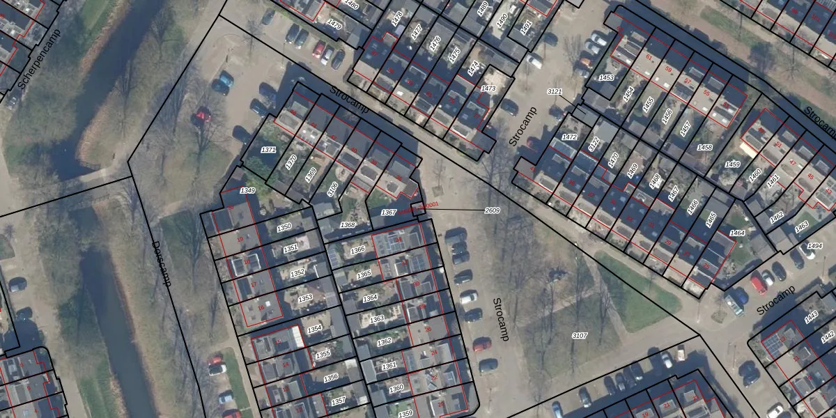 Strocamp 34-0001 is gelegen op kadastraal perceel HTN04E2609. Deze kadastrale aanduiding is uniek en wordt gebruikt door het Kadaster om eigendomsrechten en andere zakelijke rechten vast te leggen. Het perceel maakt onderdeel uit van de kadastrale gemeente Houten.