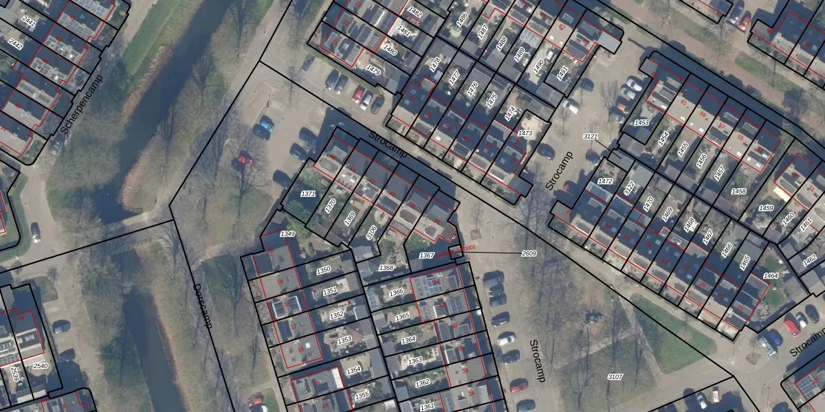 Het perceel waarop Strocamp 38 staat heeft een oppervlakte van 192 m². Dit is een middelgroot perceel. De perceeloppervlakte wordt geregistreerd door het Kadaster. Gedetailleerde informatie over de maten van dit perceel kunt u vinden in het rapport Kadastrale kaart met maatvoering van Strocamp 38.