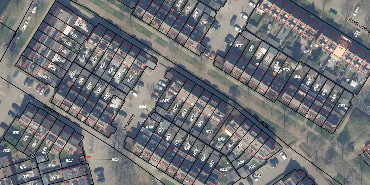 Het perceel waarop Strocamp 61 staat heeft een oppervlakte van 158 m². Dit is een middelgroot perceel. De perceeloppervlakte wordt geregistreerd door het Kadaster. Gedetailleerde informatie over de maten van dit perceel kunt u vinden in het rapport Kadastrale kaart met maatvoering van Strocamp 61.