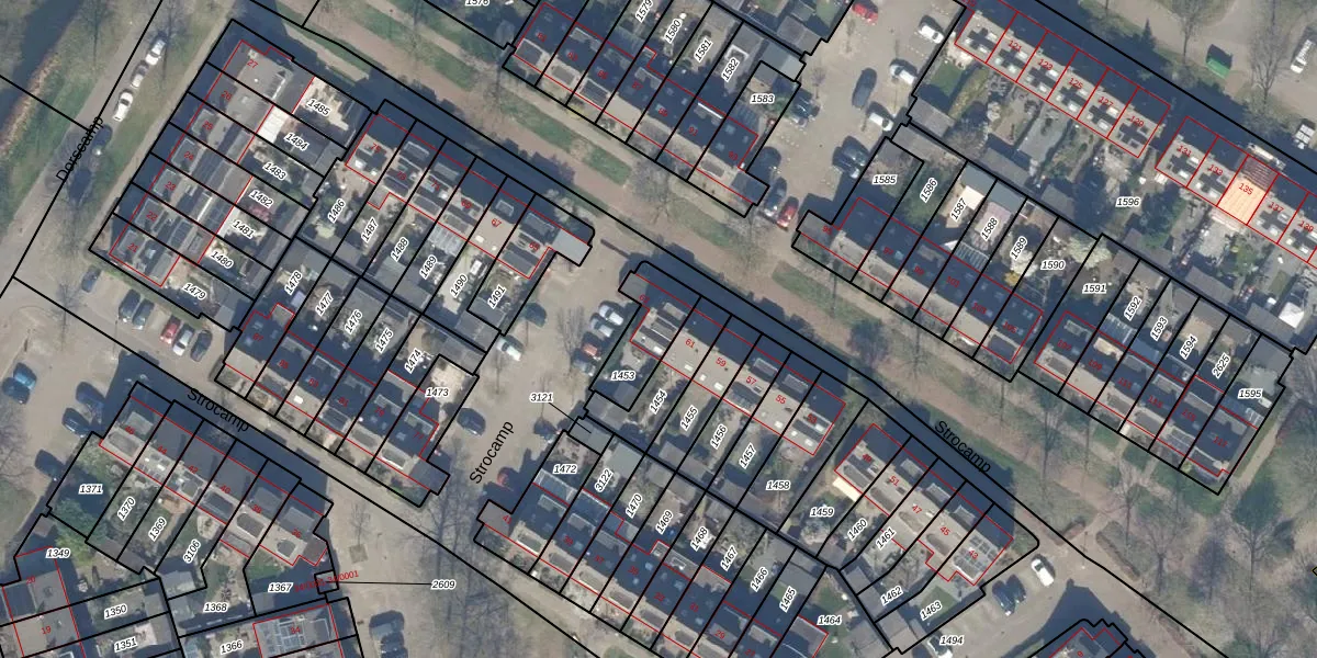 Het perceel waarop Strocamp 63 staat heeft een oppervlakte van 168 m². Dit is een middelgroot perceel. De perceeloppervlakte wordt geregistreerd door het Kadaster. Gedetailleerde informatie over de maten van dit perceel kunt u vinden in het rapport Kadastrale kaart met maatvoering van Strocamp 63.