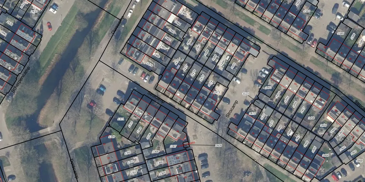 Het perceel waarop Strocamp 83 staat heeft een oppervlakte van 136 m². Dit is een middelgroot perceel. De perceeloppervlakte wordt geregistreerd door het Kadaster. Gedetailleerde informatie over de maten van dit perceel kunt u vinden in het rapport Kadastrale kaart met maatvoering van Strocamp 83.