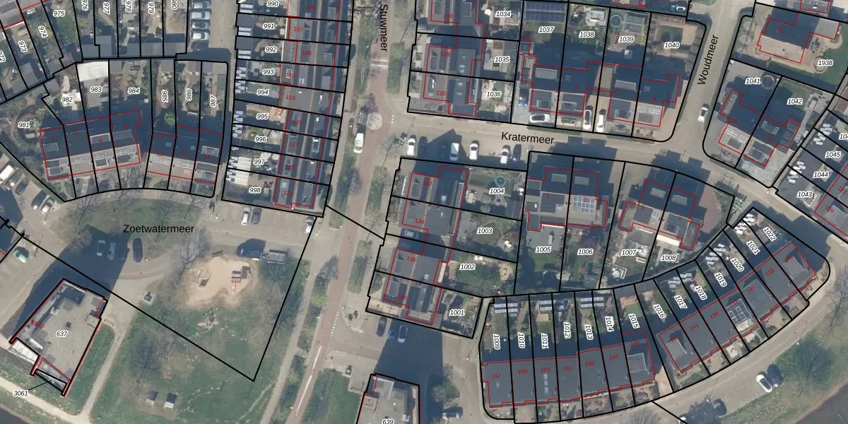 Gebruik de zoekbalk of klik op een perceel voor informatie over de adressen binnen dit perceel.