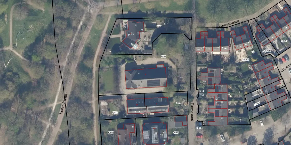 Het perceel waarop Tarwe-oord 4 staat heeft een oppervlakte van 2026 m². Dit is een zeer groot perceel. De perceeloppervlakte wordt geregistreerd door het Kadaster. Gedetailleerde informatie over de maten van dit perceel kunt u vinden in het rapport Kadastrale kaart met maatvoering van Tarwe-oord 4.
