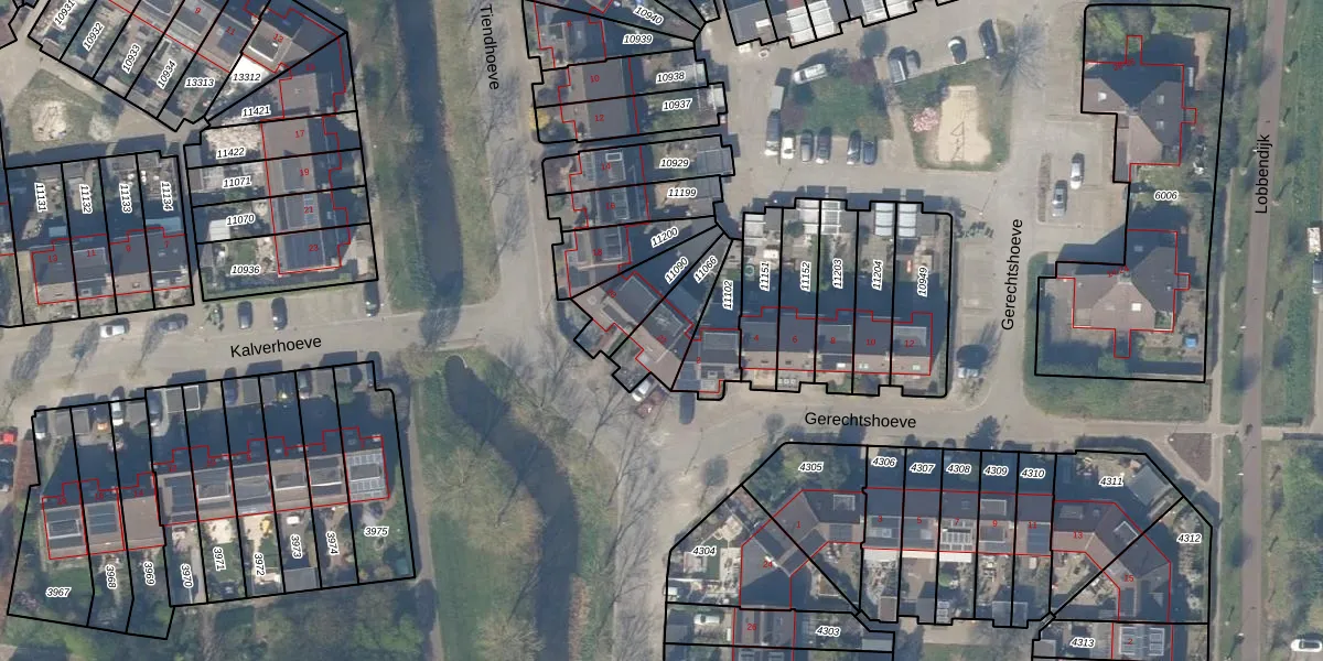 Het perceel waarop Tiendhoeve 22 staat heeft een oppervlakte van 160 m². Dit is een middelgroot perceel. De perceeloppervlakte wordt geregistreerd door het Kadaster. Gedetailleerde informatie over de maten van dit perceel kunt u vinden in het rapport Kadastrale kaart met maatvoering van Tiendhoeve 22.