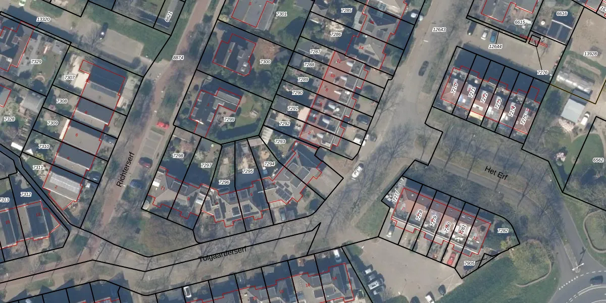 Tolgaarderserf 1 is gelegen op kadastraal perceel HTN04A7293. Deze kadastrale aanduiding is uniek en wordt gebruikt door het Kadaster om eigendomsrechten en andere zakelijke rechten vast te leggen. Het perceel maakt onderdeel uit van de kadastrale gemeente Houten.