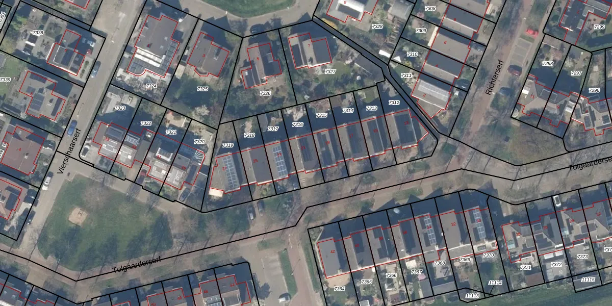 Tolgaarderserf 21 is gelegen op kadastraal perceel HTN04A7316. Deze kadastrale aanduiding is uniek en wordt gebruikt door het Kadaster om eigendomsrechten en andere zakelijke rechten vast te leggen. Het perceel maakt onderdeel uit van de kadastrale gemeente Houten.