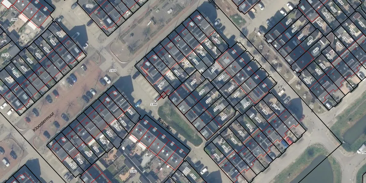 Het perceel waarop Tolmuur 9 staat heeft een oppervlakte van 157 m². Dit is een middelgroot perceel. De perceeloppervlakte wordt geregistreerd door het Kadaster. Gedetailleerde informatie over de maten van dit perceel kunt u vinden in het rapport Kadastrale kaart met maatvoering van Tolmuur 9.