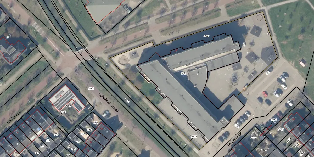 Het perceel waarop Torenmuur 15 staat heeft een oppervlakte van 2200 m². Dit is een zeer groot perceel. De perceeloppervlakte wordt geregistreerd door het Kadaster. Gedetailleerde informatie over de maten van dit perceel kunt u vinden in het rapport Kadastrale kaart met maatvoering van Torenmuur 15.