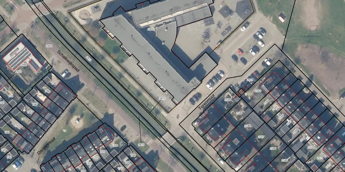 Het perceel waarop Torenmuur 3 staat heeft een oppervlakte van 2200 m². Dit is een zeer groot perceel. De perceeloppervlakte wordt geregistreerd door het Kadaster. Gedetailleerde informatie over de maten van dit perceel kunt u vinden in het rapport Kadastrale kaart met maatvoering van Torenmuur 3.