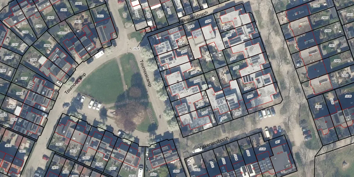 Tournooicamp 25 is gelegen op kadastraal perceel HTN04E1518. Deze kadastrale aanduiding is uniek en wordt gebruikt door het Kadaster om eigendomsrechten en andere zakelijke rechten vast te leggen. Het perceel maakt onderdeel uit van de kadastrale gemeente Houten.