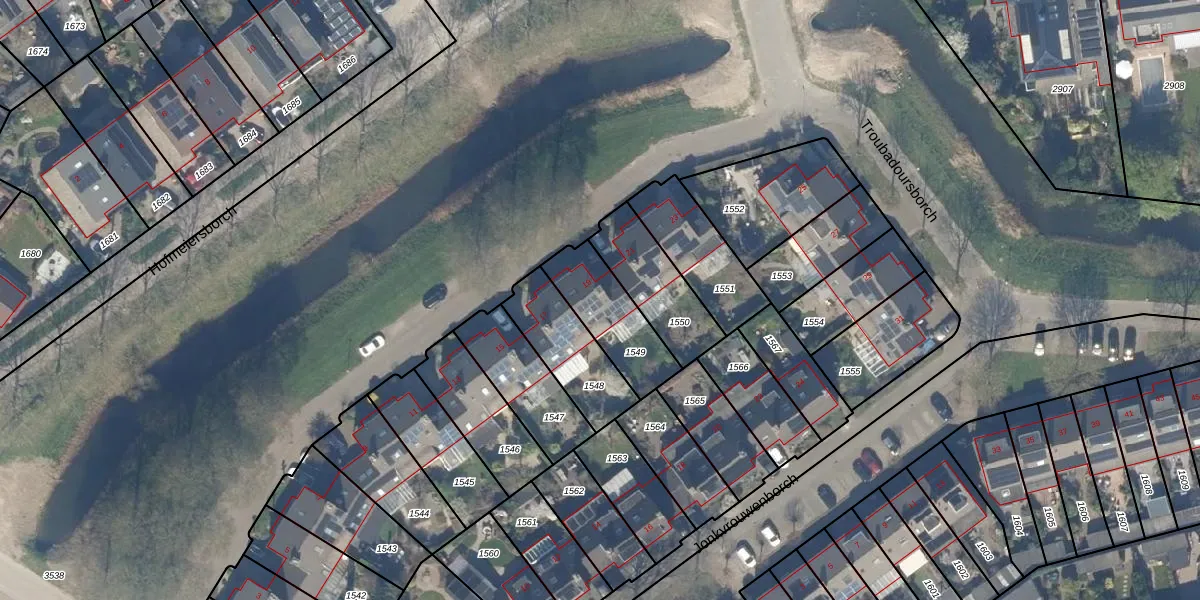 Troubadoursborch 19 is gelegen op kadastraal perceel HTN04E1549. Deze kadastrale aanduiding is uniek en wordt gebruikt door het Kadaster om eigendomsrechten en andere zakelijke rechten vast te leggen. Het perceel maakt onderdeel uit van de kadastrale gemeente Houten.