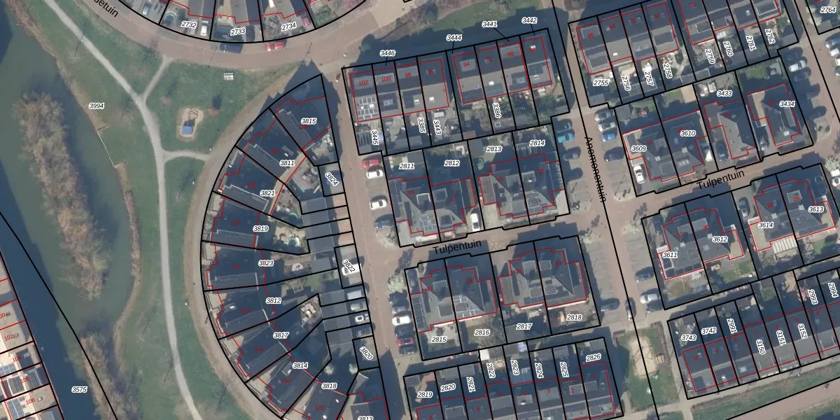 Het perceel waarop Tulpentuin 39 staat heeft een oppervlakte van 219 m². Dit is een middelgroot perceel. De perceeloppervlakte wordt geregistreerd door het Kadaster. Gedetailleerde informatie over de maten van dit perceel kunt u vinden in het rapport Kadastrale kaart met maatvoering van Tulpentuin 39.