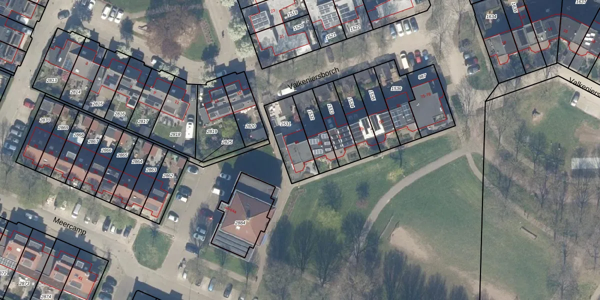 Gebruik de zoekbalk of klik op een perceel voor informatie over de adressen binnen dit perceel.