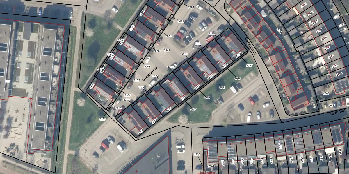 Gebruik de zoekbalk of klik op een perceel voor informatie over de adressen binnen dit perceel.