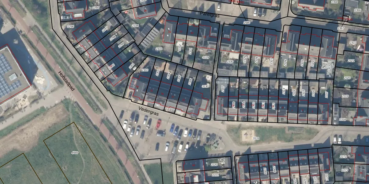 Vedergras 25 is gelegen op kadastraal perceel HTN04B2306. Deze kadastrale aanduiding is uniek en wordt gebruikt door het Kadaster om eigendomsrechten en andere zakelijke rechten vast te leggen. Het perceel maakt onderdeel uit van de kadastrale gemeente Houten.