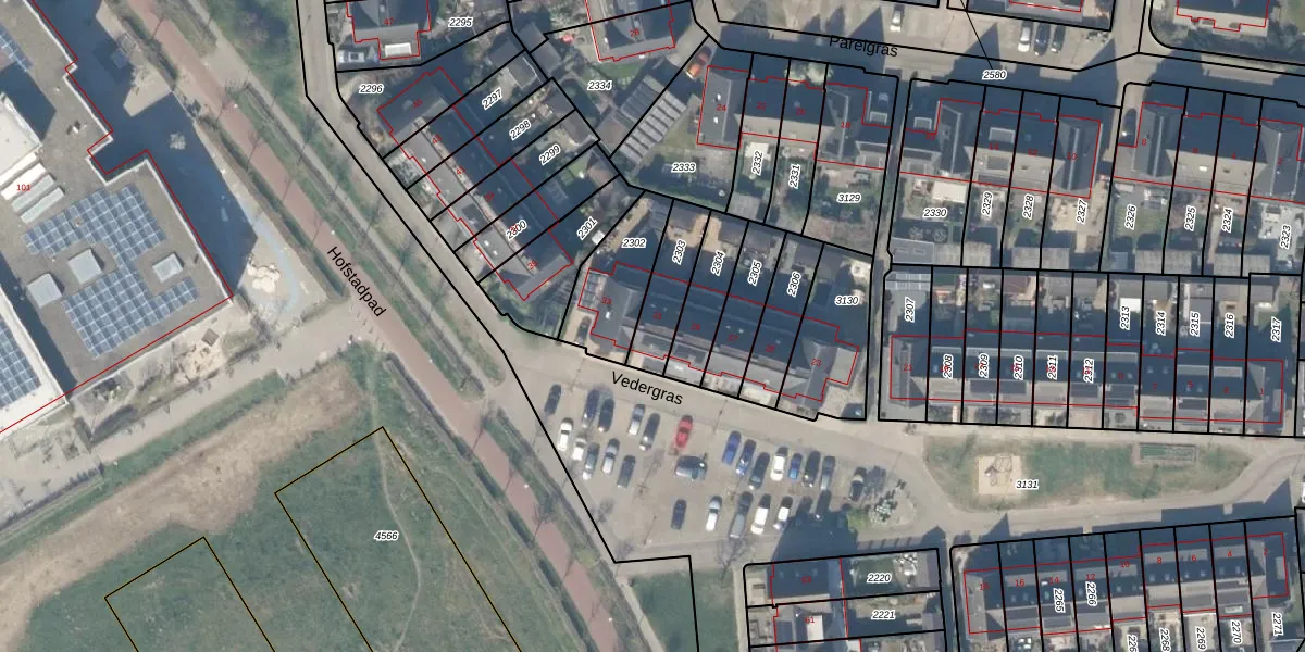 Gebruik de zoekbalk of klik op een perceel voor informatie over de adressen binnen dit perceel.