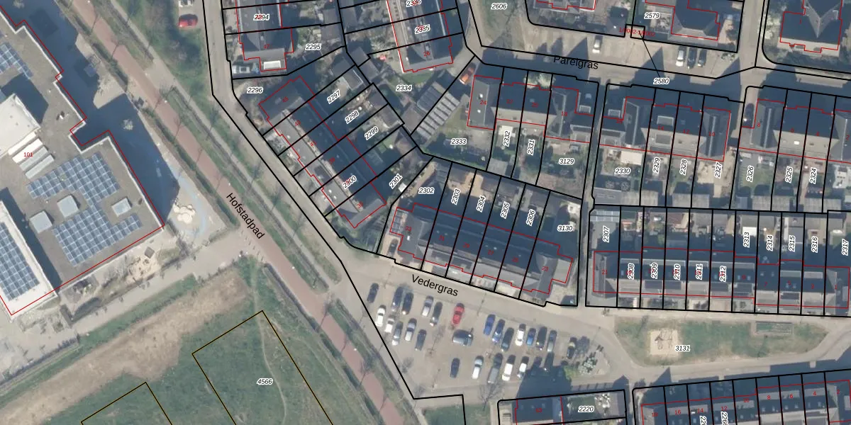 Het perceel waarop Vedergras 33 staat heeft een oppervlakte van 242 m². Dit is een middelgroot perceel. De perceeloppervlakte wordt geregistreerd door het Kadaster. Gedetailleerde informatie over de maten van dit perceel kunt u vinden in het rapport Kadastrale kaart met maatvoering van Vedergras 33.
