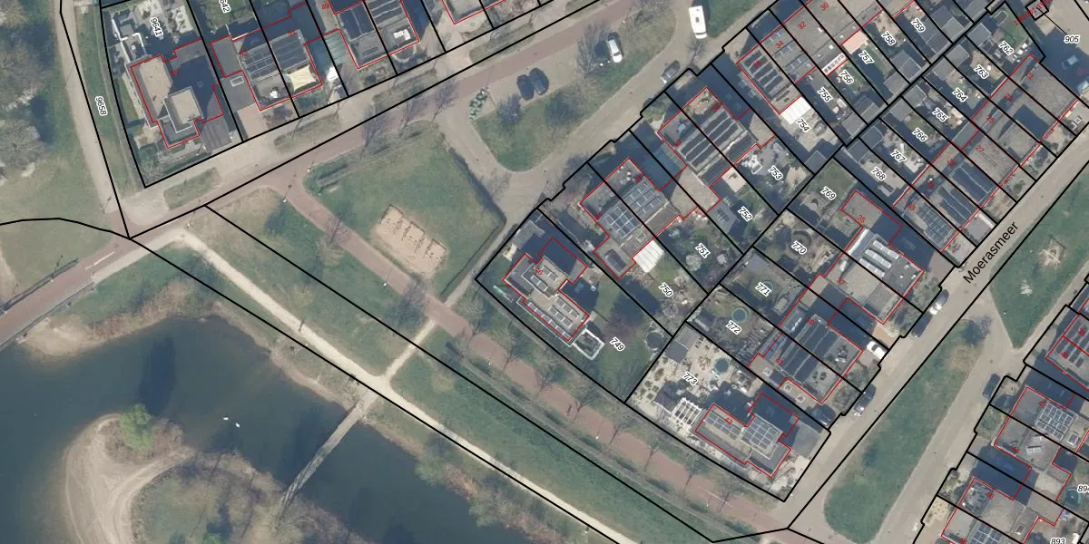Het perceel waarop Veenmeer 46 staat heeft een oppervlakte van 593 m². Dit is een groot perceel. De perceeloppervlakte wordt geregistreerd door het Kadaster. Gedetailleerde informatie over de maten van dit perceel kunt u vinden in het rapport Kadastrale kaart met maatvoering van Veenmeer 46.