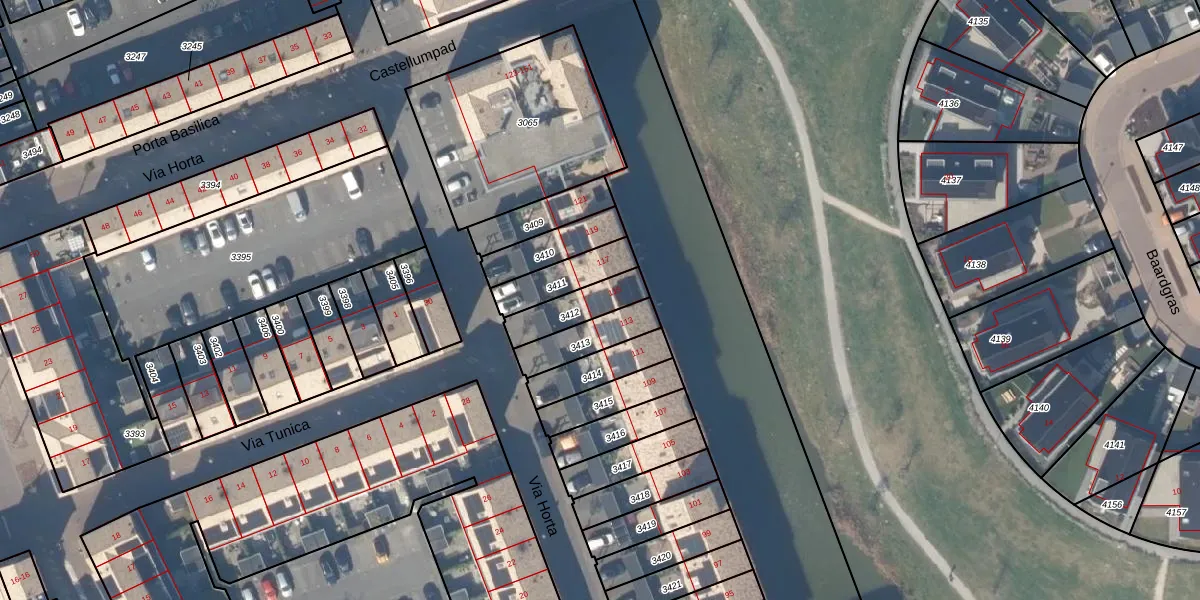 Via Horta 115 is gelegen op kadastraal perceel HTN04B3412. Deze kadastrale aanduiding is uniek en wordt gebruikt door het Kadaster om eigendomsrechten en andere zakelijke rechten vast te leggen. Het perceel maakt onderdeel uit van de kadastrale gemeente Houten.