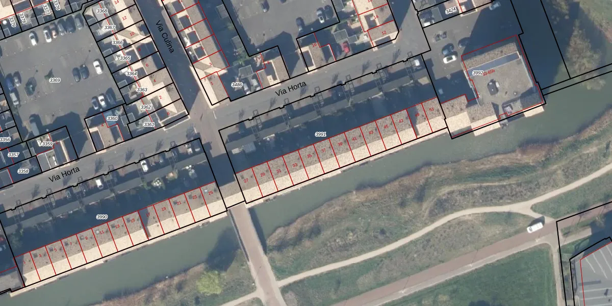 Via Horta 35 is gelegen op kadastraal perceel HTN04B3991. Deze kadastrale aanduiding is uniek en wordt gebruikt door het Kadaster om eigendomsrechten en andere zakelijke rechten vast te leggen. Het perceel maakt onderdeel uit van de kadastrale gemeente Houten.