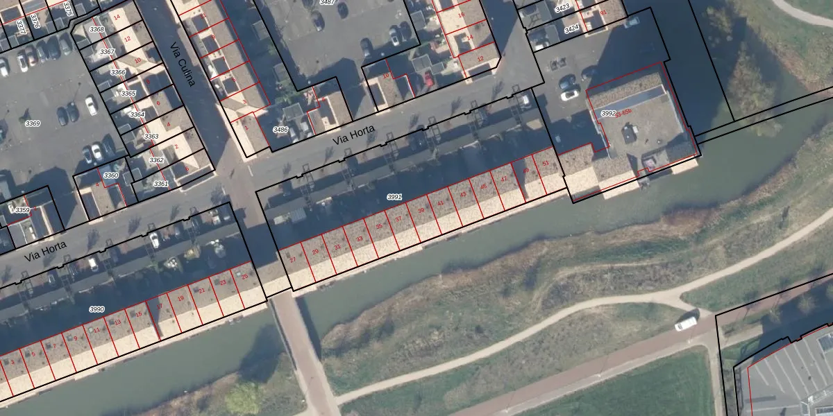 Via Horta 39 is gelegen op kadastraal perceel HTN04B3991. Deze kadastrale aanduiding is uniek en wordt gebruikt door het Kadaster om eigendomsrechten en andere zakelijke rechten vast te leggen. Het perceel maakt onderdeel uit van de kadastrale gemeente Houten.