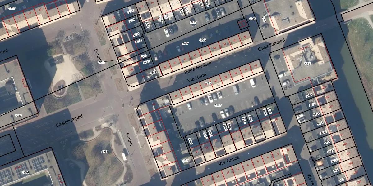 Via Horta 46 is gelegen op kadastraal perceel HTN04B3394. Deze kadastrale aanduiding is uniek en wordt gebruikt door het Kadaster om eigendomsrechten en andere zakelijke rechten vast te leggen. Het perceel maakt onderdeel uit van de kadastrale gemeente Houten.