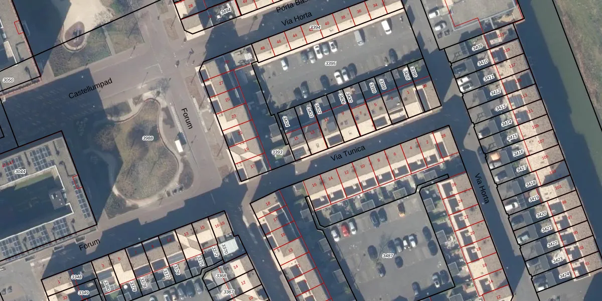Gebruik de zoekbalk of klik op een perceel voor informatie over de adressen binnen dit perceel.