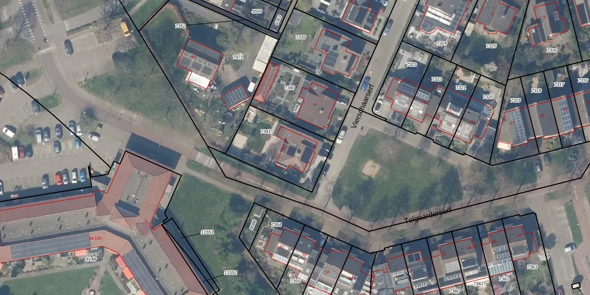 Het perceel waarop Vierschaarserf 2 staat heeft een oppervlakte van 587 m². Dit is een groot perceel. De perceeloppervlakte wordt geregistreerd door het Kadaster. Gedetailleerde informatie over de maten van dit perceel kunt u vinden in het rapport Kadastrale kaart met maatvoering van Vierschaarserf 2.