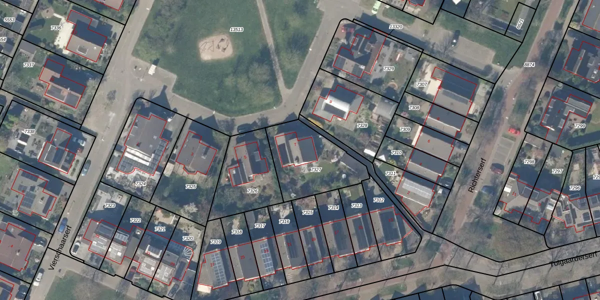 Het perceel waarop Vierschaarserf 7 staat heeft een oppervlakte van 572 m². Dit is een groot perceel. De perceeloppervlakte wordt geregistreerd door het Kadaster. Gedetailleerde informatie over de maten van dit perceel kunt u vinden in het rapport Kadastrale kaart met maatvoering van Vierschaarserf 7.