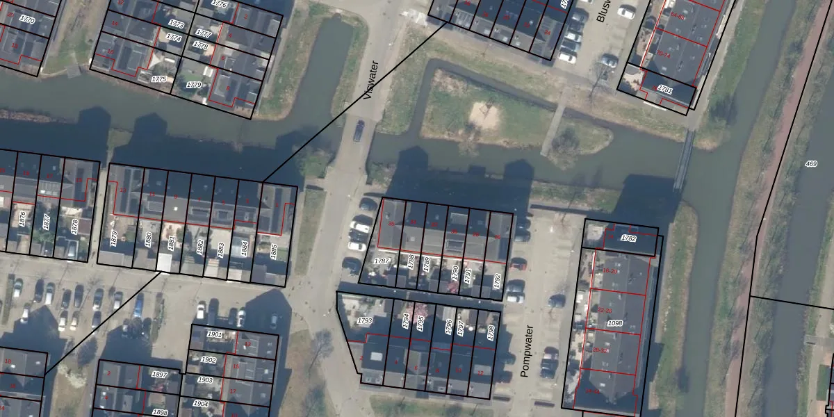 Het perceel waarop Viswater 34 staat heeft een oppervlakte van 108 m². Dit is een middelgroot perceel. De perceeloppervlakte wordt geregistreerd door het Kadaster. Gedetailleerde informatie over de maten van dit perceel kunt u vinden in het rapport Kadastrale kaart met maatvoering van Viswater 34.