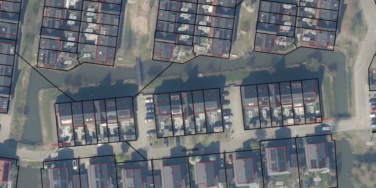 Het perceel waarop Viswater 39 staat heeft een oppervlakte van 140 m². Dit is een middelgroot perceel. De perceeloppervlakte wordt geregistreerd door het Kadaster. Gedetailleerde informatie over de maten van dit perceel kunt u vinden in het rapport Kadastrale kaart met maatvoering van Viswater 39.
