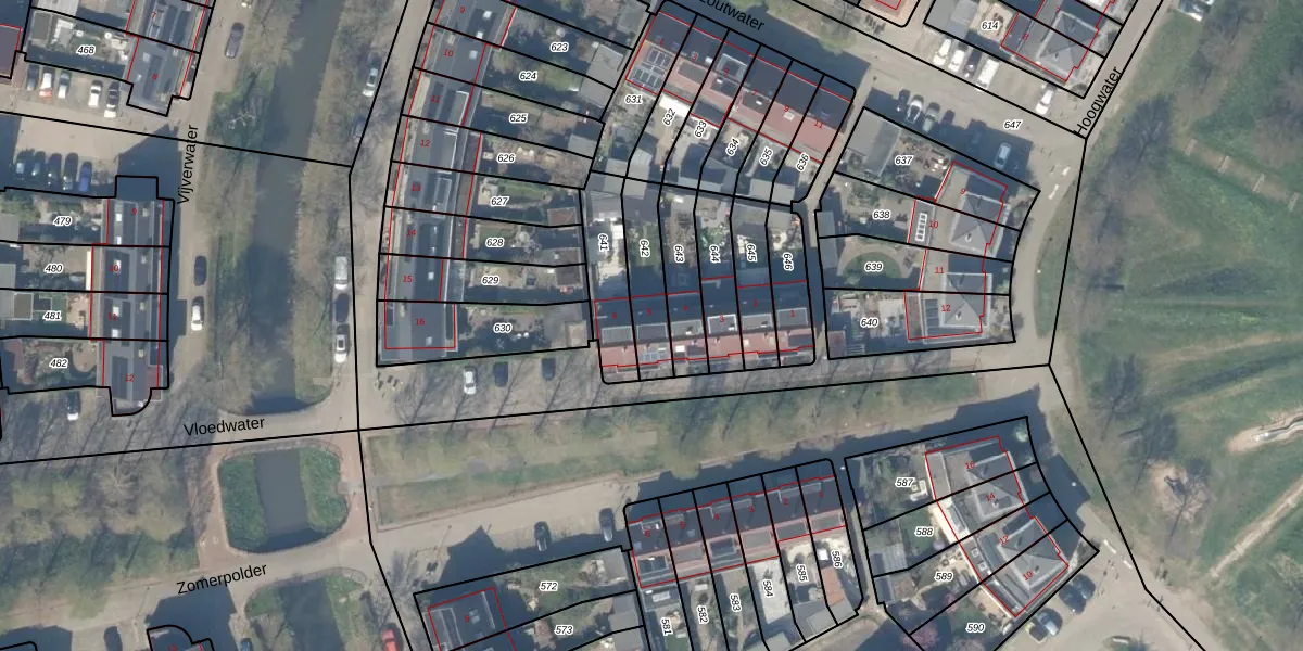 Vloedwater 5 is gelegen op kadastraal perceel HTN04H642. Deze kadastrale aanduiding is uniek en wordt gebruikt door het Kadaster om eigendomsrechten en andere zakelijke rechten vast te leggen. Het perceel maakt onderdeel uit van de kadastrale gemeente Houten.