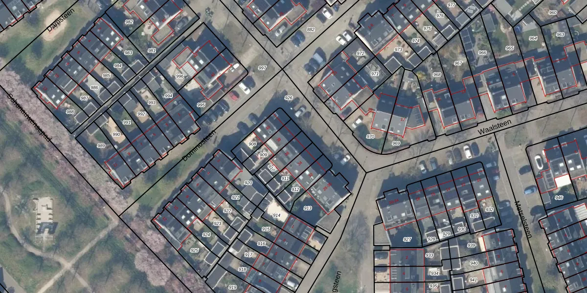 Gebruik de zoekbalk of klik op een perceel voor informatie over de adressen binnen dit perceel.