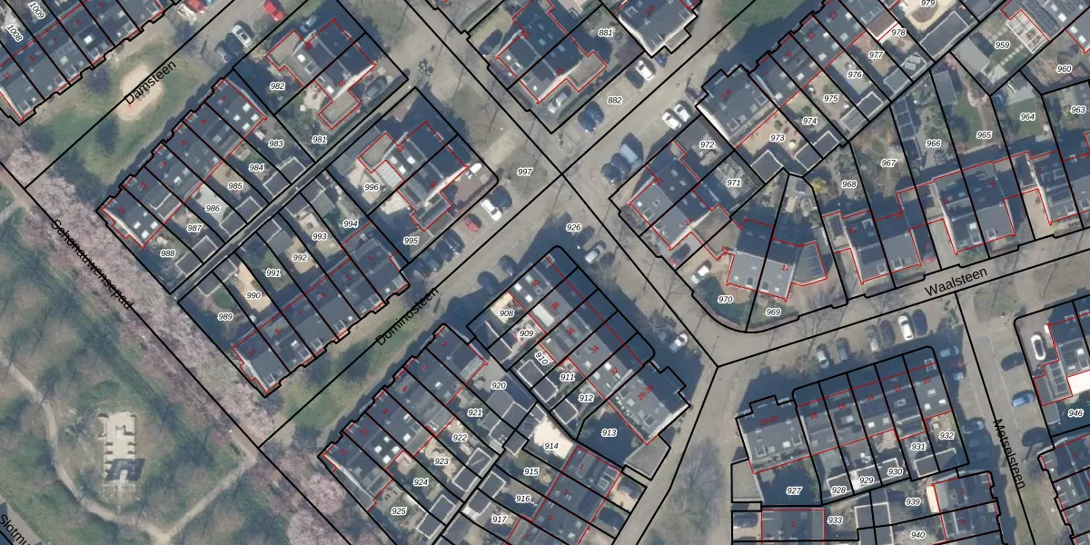 Gebruik de zoekbalk of klik op een perceel voor informatie over de adressen binnen dit perceel.
