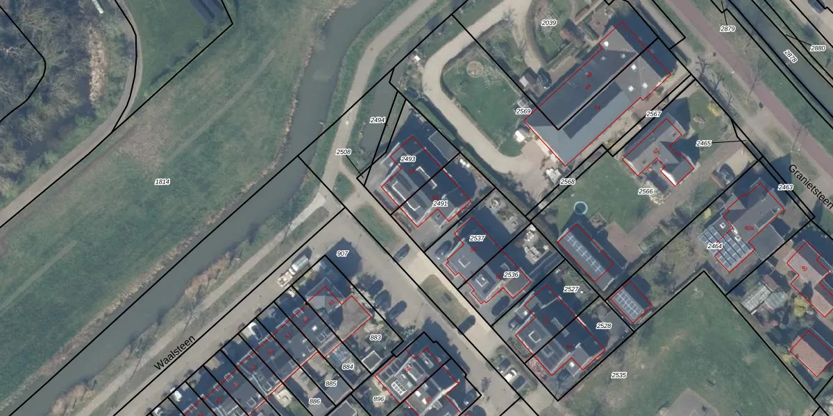 Gebruik de zoekbalk of klik op een perceel voor informatie over de adressen binnen dit perceel.