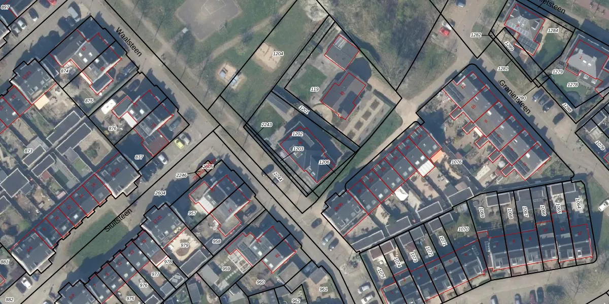 Gebruik de zoekbalk of klik op een perceel voor informatie over de adressen binnen dit perceel.