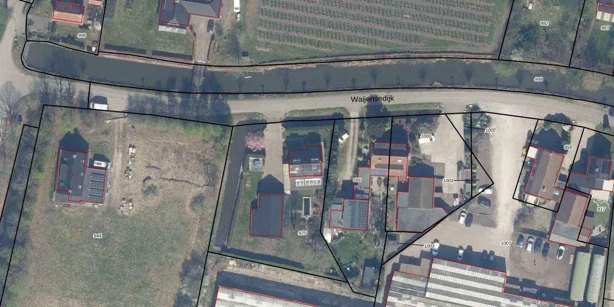 Het perceel waarop Waijensedijk 3 staat heeft een oppervlakte van 1740 m². Dit is een zeer groot perceel. De perceeloppervlakte wordt geregistreerd door het Kadaster. Gedetailleerde informatie over de maten van dit perceel kunt u vinden in het rapport Kadastrale kaart met maatvoering van Waijensedijk 3.