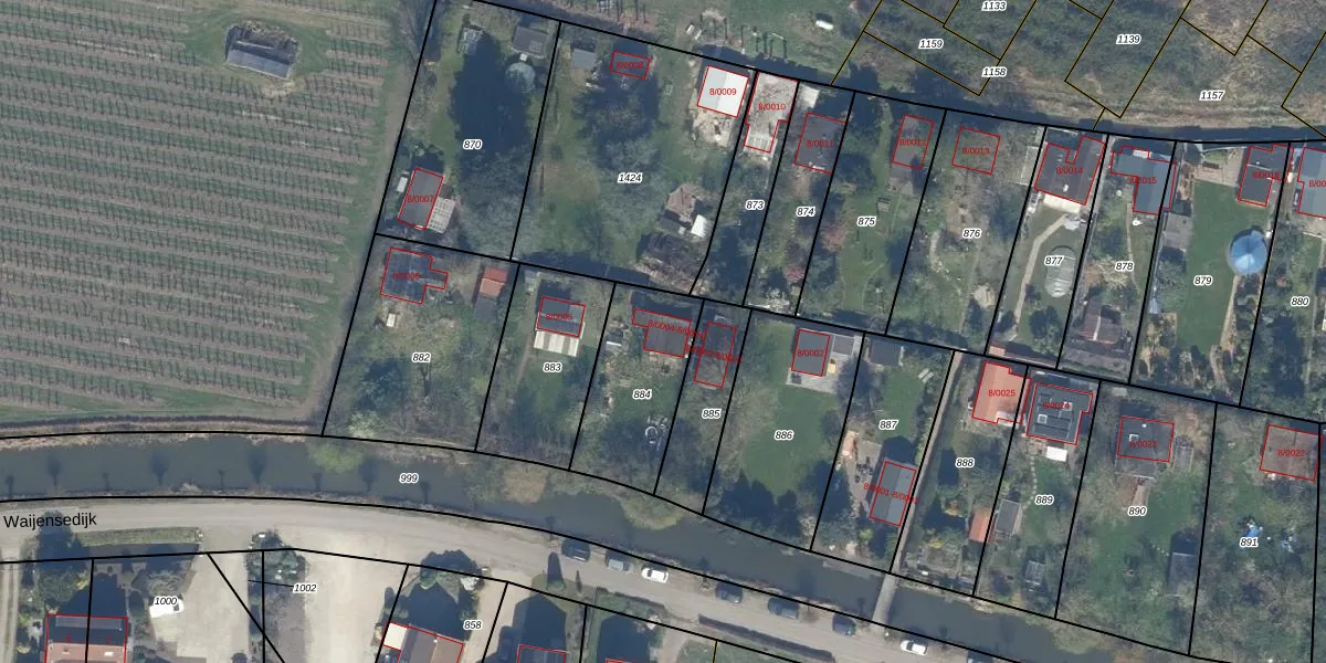 Het perceel waarop Waijensedijk 8-0004 staat heeft een oppervlakte van 405 m². Dit is een groot perceel. De perceeloppervlakte wordt geregistreerd door het Kadaster. Gedetailleerde informatie over de maten van dit perceel kunt u vinden in het rapport Kadastrale kaart met maatvoering van Waijensedijk 8-0004.