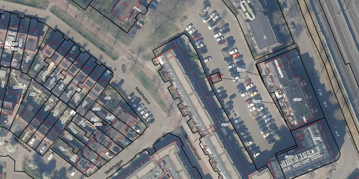 Het perceel waarop Weerwolfseind 10 staat heeft een oppervlakte van 2180 m². Dit is een zeer groot perceel. De perceeloppervlakte wordt geregistreerd door het Kadaster. Gedetailleerde informatie over de maten van dit perceel kunt u vinden in het rapport Kadastrale kaart met maatvoering van Weerwolfseind 10.