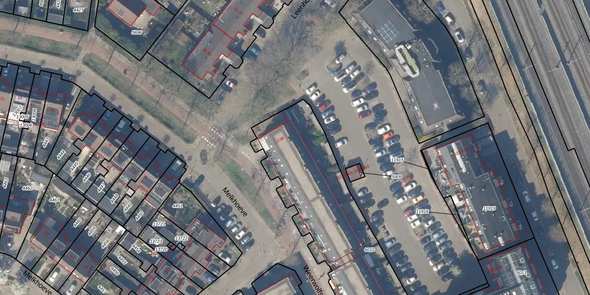 Het perceel waarop Weerwolfseind 22 staat heeft een oppervlakte van 2180 m². Dit is een zeer groot perceel. De perceeloppervlakte wordt geregistreerd door het Kadaster. Gedetailleerde informatie over de maten van dit perceel kunt u vinden in het rapport Kadastrale kaart met maatvoering van Weerwolfseind 22.